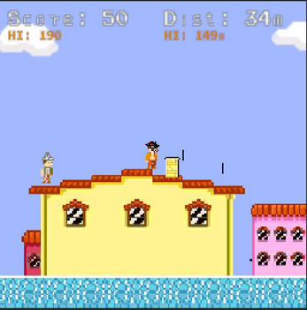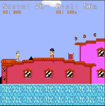 The game is an endless runner, side-scroller with a procedurally generated environment and a relentlessly pursuing enemy. The game's graphics and audio style mimic classic NES games. The Power-ups of the Game include various types of masks that give the player different temporary abilities.